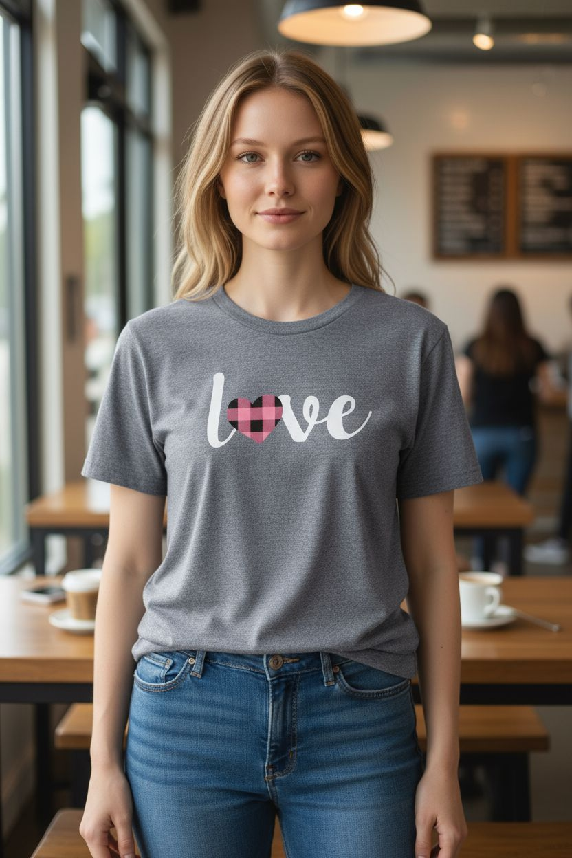 Keep it cozy, classic, and full of love π with this adorable βLoveβ graphic tee! Featuring a sweet buffalo plaid heart β€οΈ nestled into the word love, this shirt brings all the warm, comfy vibes β perfect for Valentineβs Day, coffee dates β, or everyday wear! πΈ