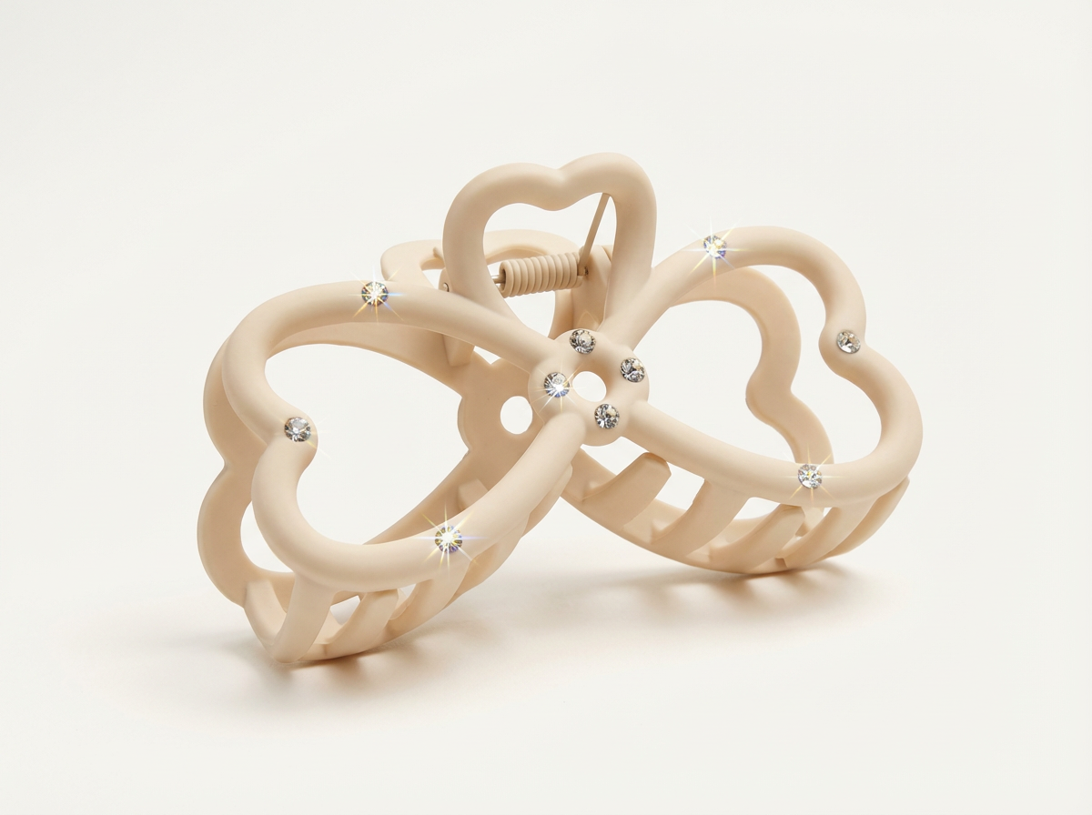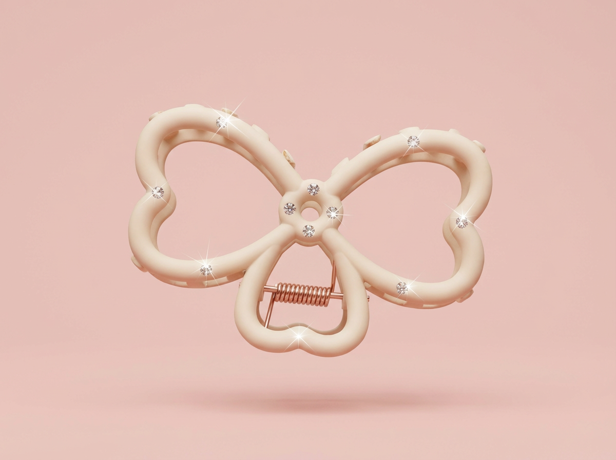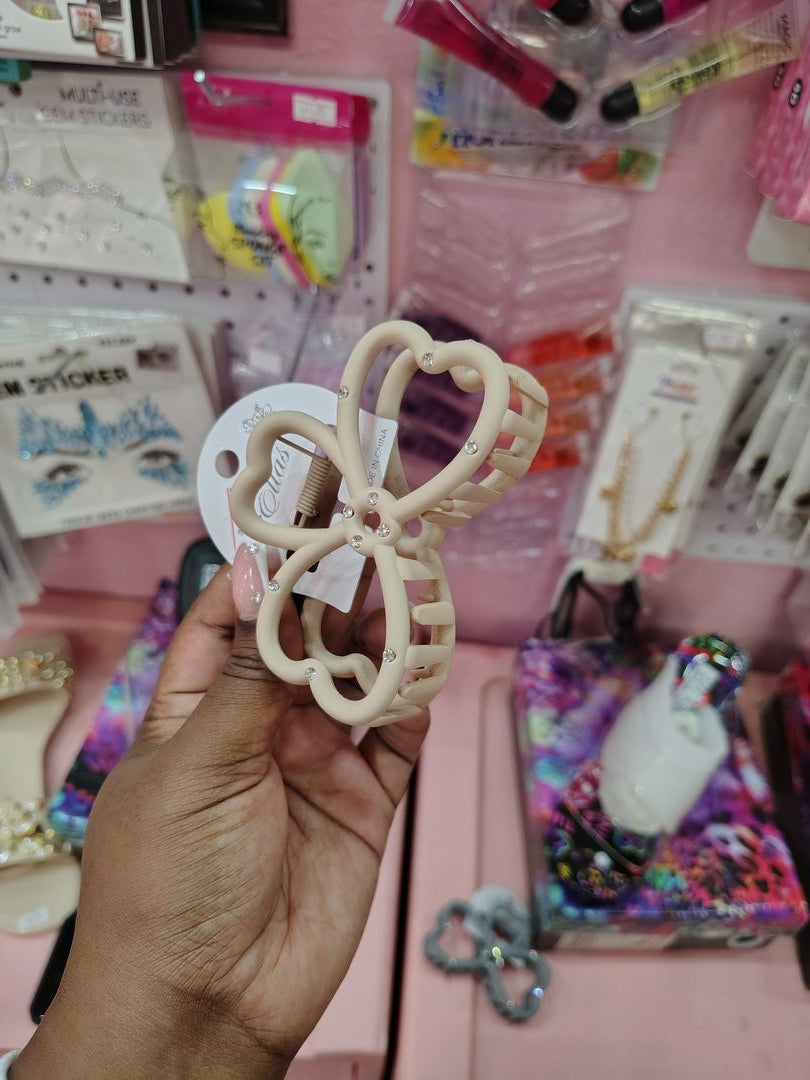 Step into your own fashion love story with the Sweetheart Sparkle Bow Hair Claw. This darling accessory features a romantic butterfly-meets-heart silhouette in a dreamy cream matte finish, accented with delicate rhinestones for that extra touch of magic. ✨