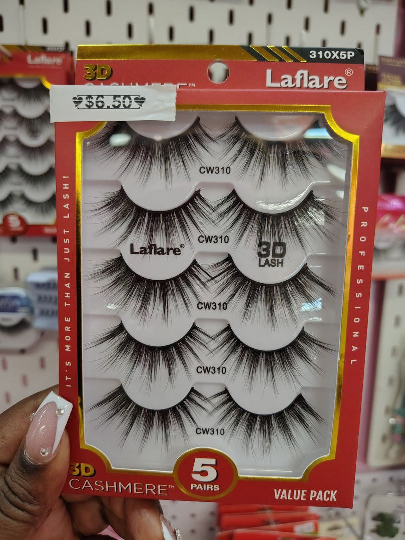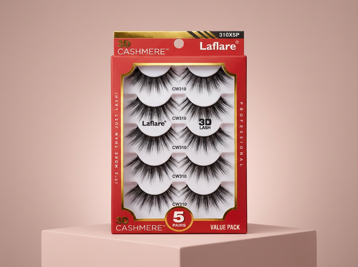This value set contains 5 pairs of Laflare 3D Cashmere Lashes in Style CW310. These lashes are made from durable synthetic cashmere fibers and feature a flexible lash band for easy application and comfortable wear throughout the day. 🎀