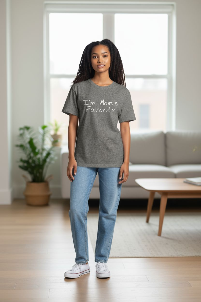Show off your playful side with this comfy "I’m Mom’s Favorite" graphic tee. Perfect for family gatherings, Mother’s Day, or just to remind your siblings who the real favorite is 😉.