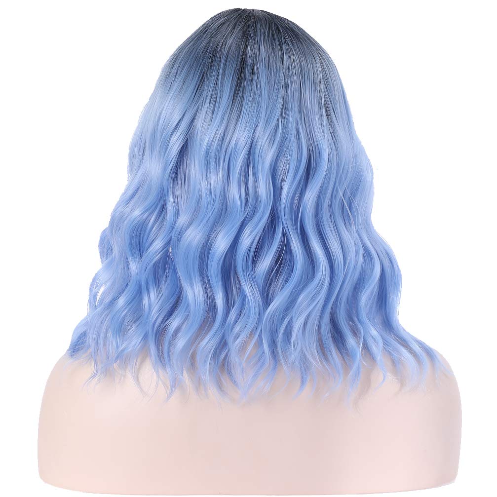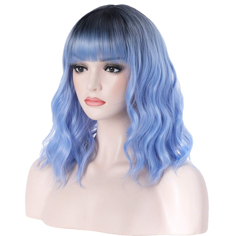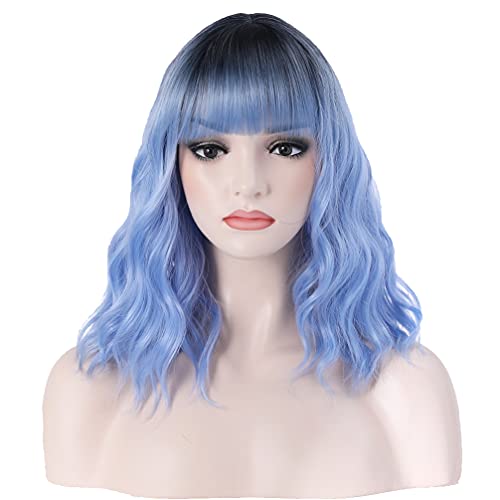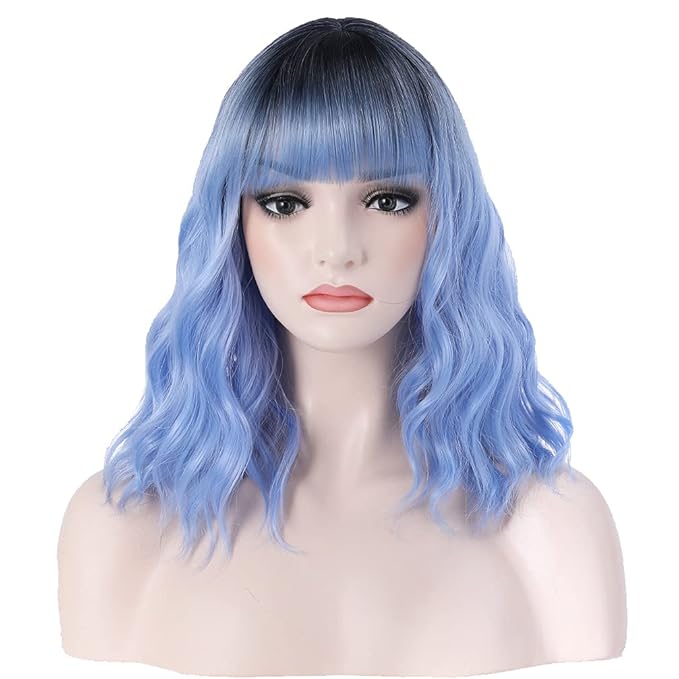 Sleek 14" ombrΓ© bob wig blends black roots into lake-blue ends for a playful, camera-ready look that's silky and soft.