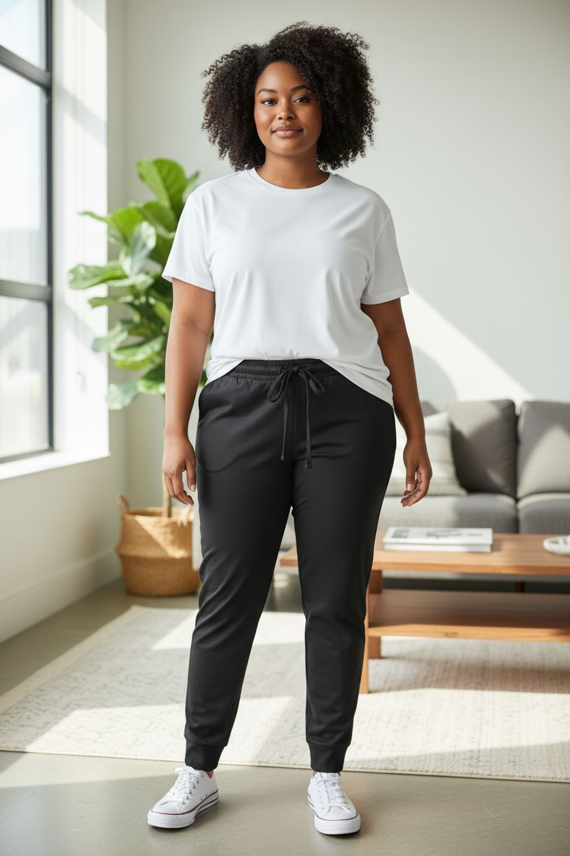 πŸ–€ Everyday Comfort Black Drawstring Joggers | Plus Size Casual Lounge Pants for Effortless Style ✨