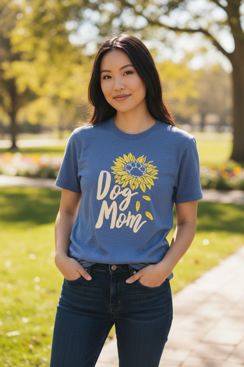 Show off your pawsome love for your furry best friend πΆπ with this adorable βDog Momβ tee! Featuring a bright sunflower π» and playful script lettering, this shirt is made for every proud dog mama who believes love is spelled W-A-G. πΎβ¨