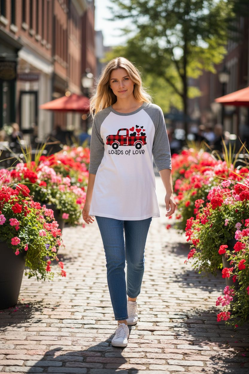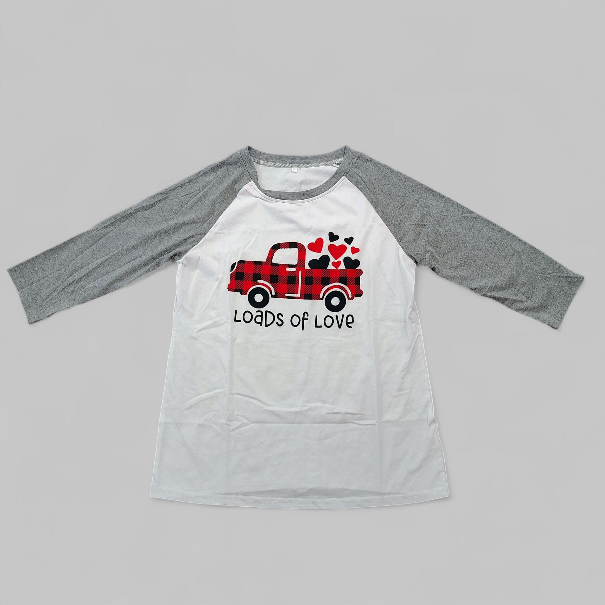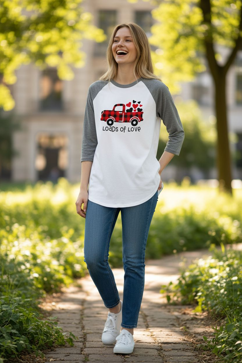 “Loads of Love” Raglan Tee 🚚❤️ – Plaid Truck Valentine Shirt 💌