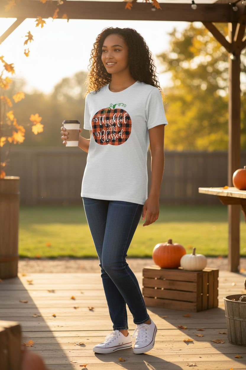 Sweater weather vibes, pumpkin spice, and gratitude season ๐โ โ this โThankful and Blessedโ tee is the ultimate fall favorite! Featuring a cute buffalo plaid pumpkin ๐ and elegant script lettering, itโs the perfect reminder to stay cozy, grateful, and oh-so-blessed this autumn. ๐๐